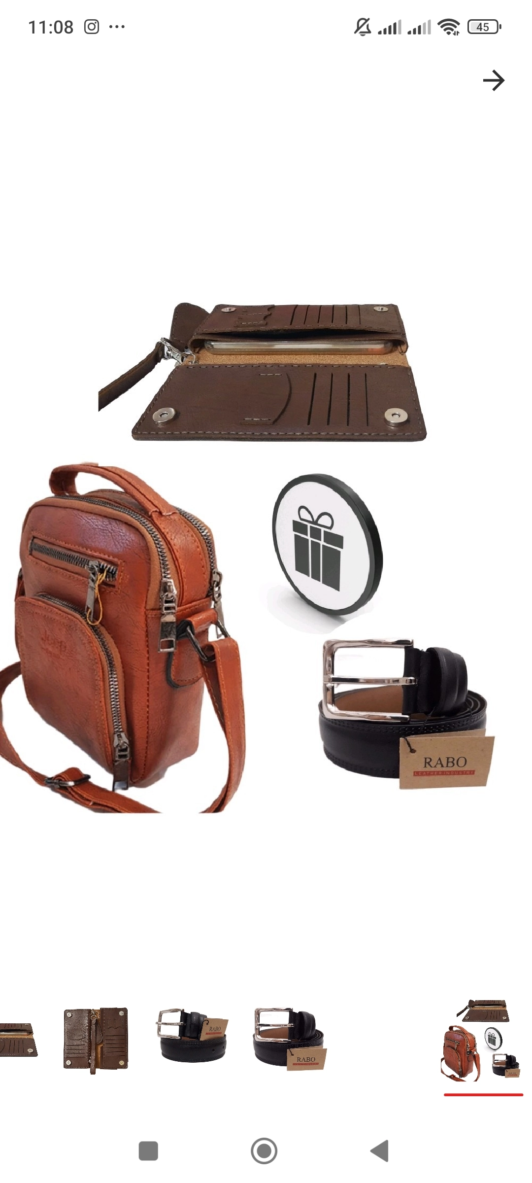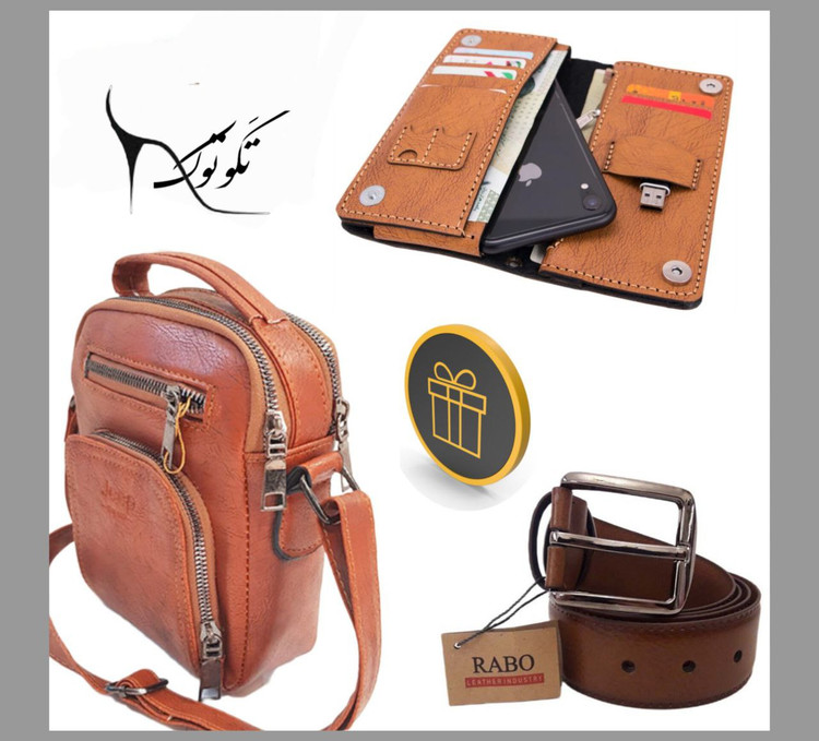 ست هدیه مردانه 4 تیکه شامل کیف دوشی کیف موبایل کمربند جاکلیدی با کیفیت